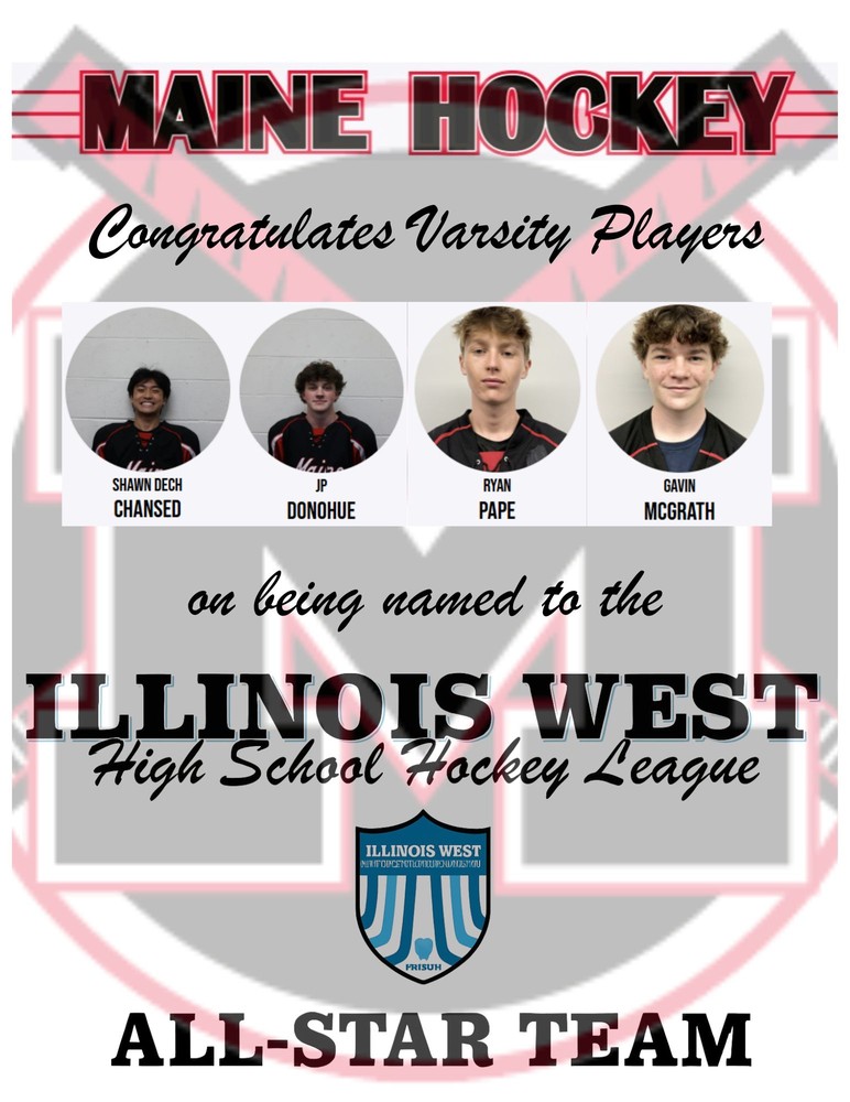 Congratulations to Shawn Chansed (F), JP Donohue (F), Ryan Pape (F), and Gavin McGrath (G) on being named to the 2026 IL West High School Hockey League Varsity All-Star Team! 🏒⭐