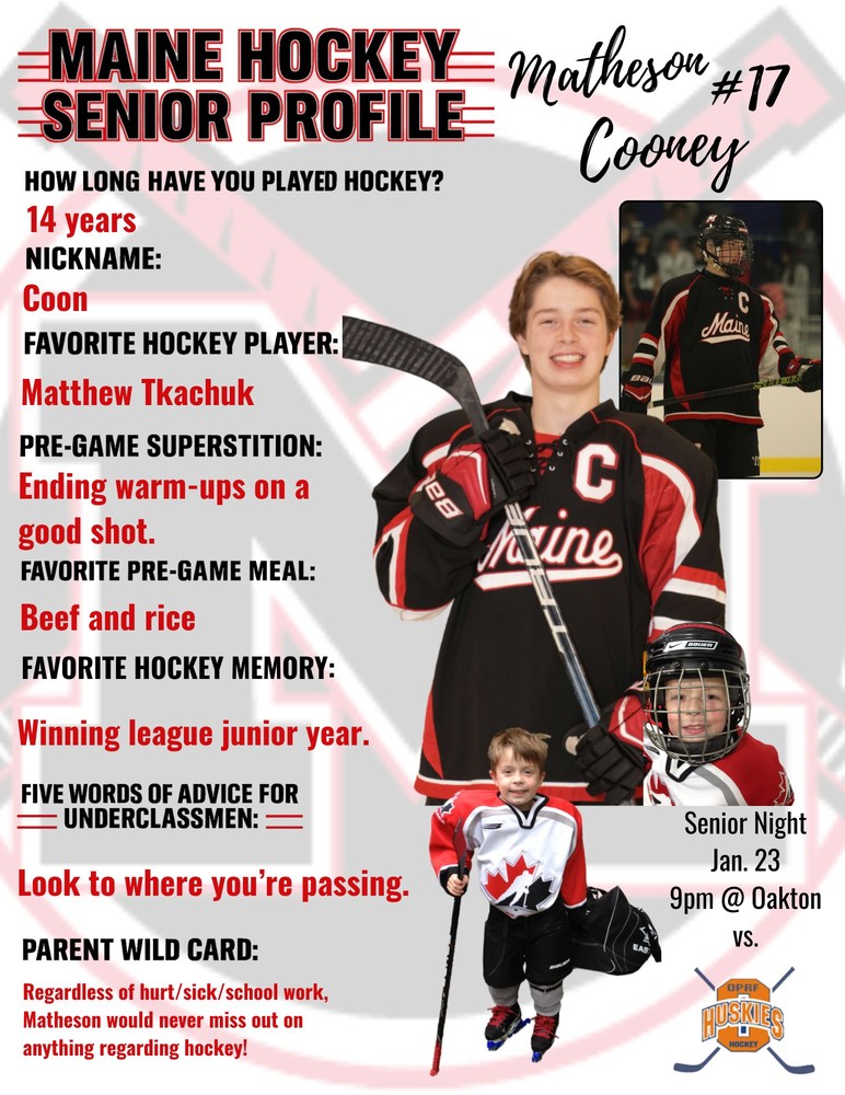 Maine Hockey Senior Profile - Matheson Cooney #17