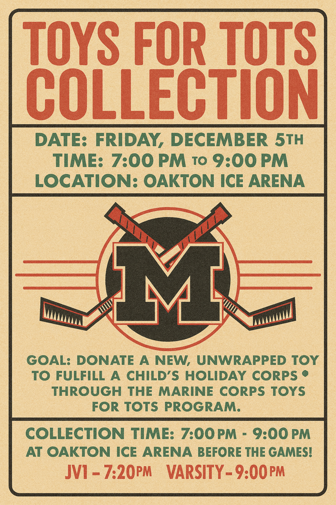 COLLECTION TIME: 7:00 PM - 9:00 PM at OAKTON ICE ARENA before the games!